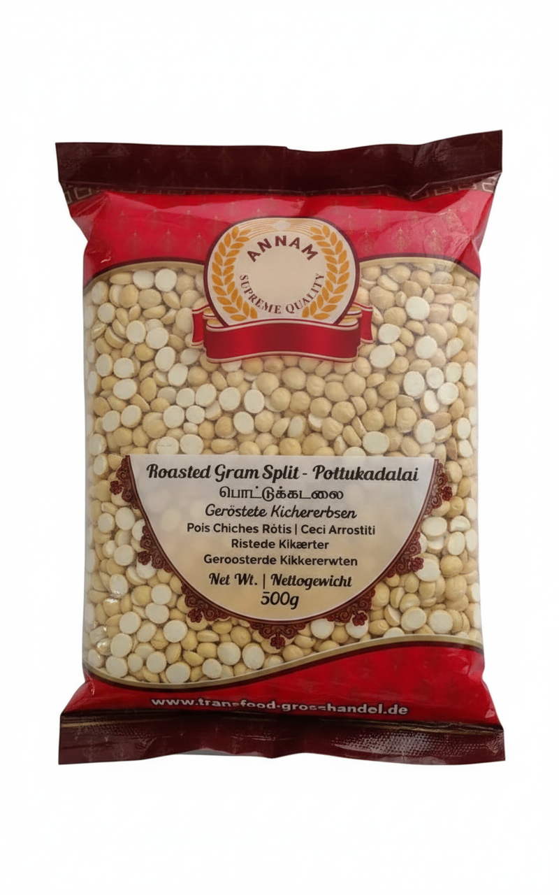 Annam Roasted Gram Split is incredibly versatile and can be enjoyed in various ways. It is a popular, healthy snack on its own, providing a satisfying crunch. In South Indian cuisine, it is a key ingredient in fresh coconut chutneys, providing thickness and flavor. It can also be ground into a flour to make protein-rich pancakes (cheela), or added to various savory mixes (namkeen) for texture. Its roasted nature means it's perfect for quick additions to salads, yogurt, or as a crunchy topping for soups and chutneys.